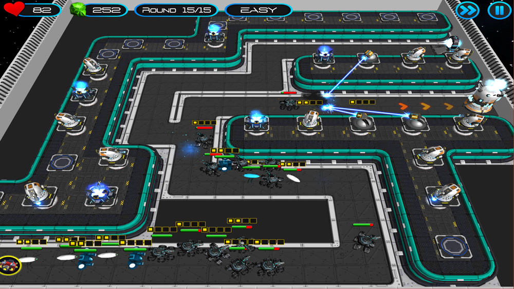 - 6 different types of towers. Each tower can be improved as experience is gained!