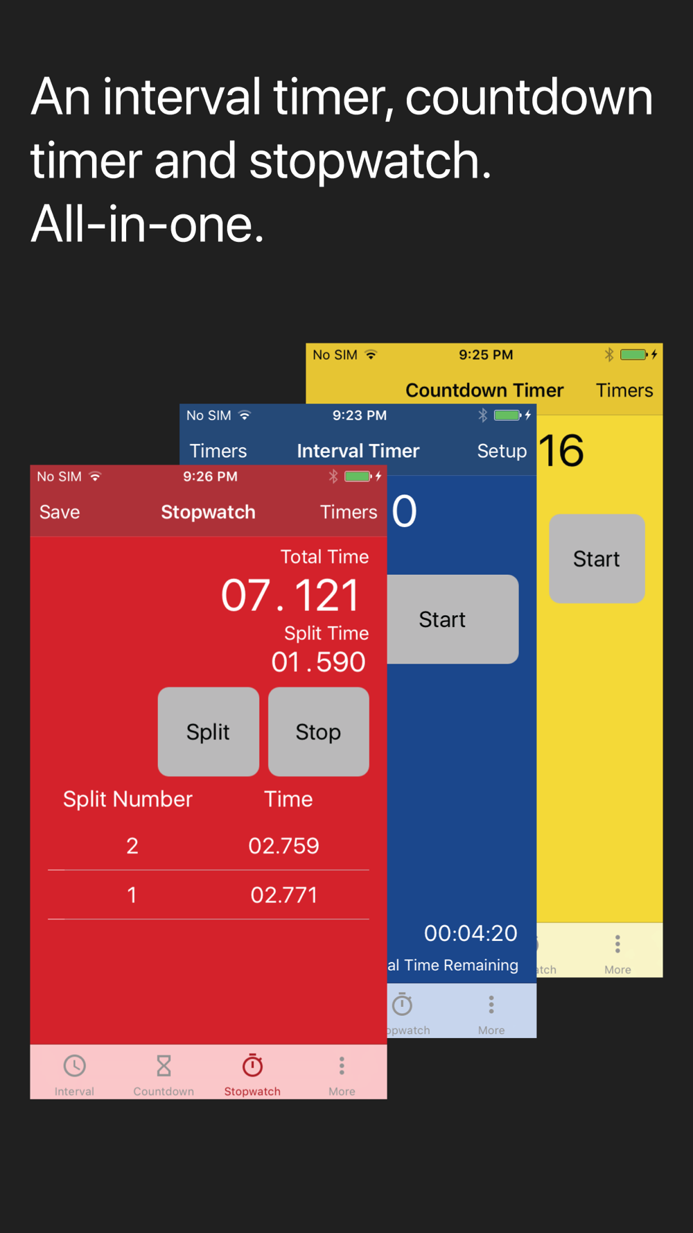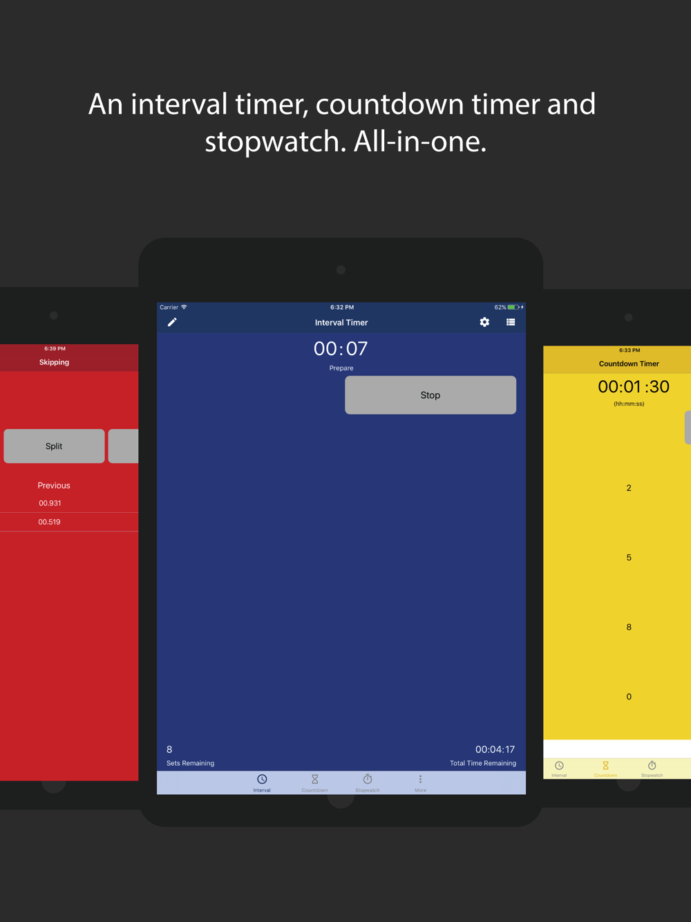 TimeSpotter is the only timer app you need. It includes an interval timer, countdown timer and a stopwatch so it can meet all of your timer needs. While TimeSpotter is primarily used as a fitness tool, it also works great in other areas such as productivity, meditation and cooking.