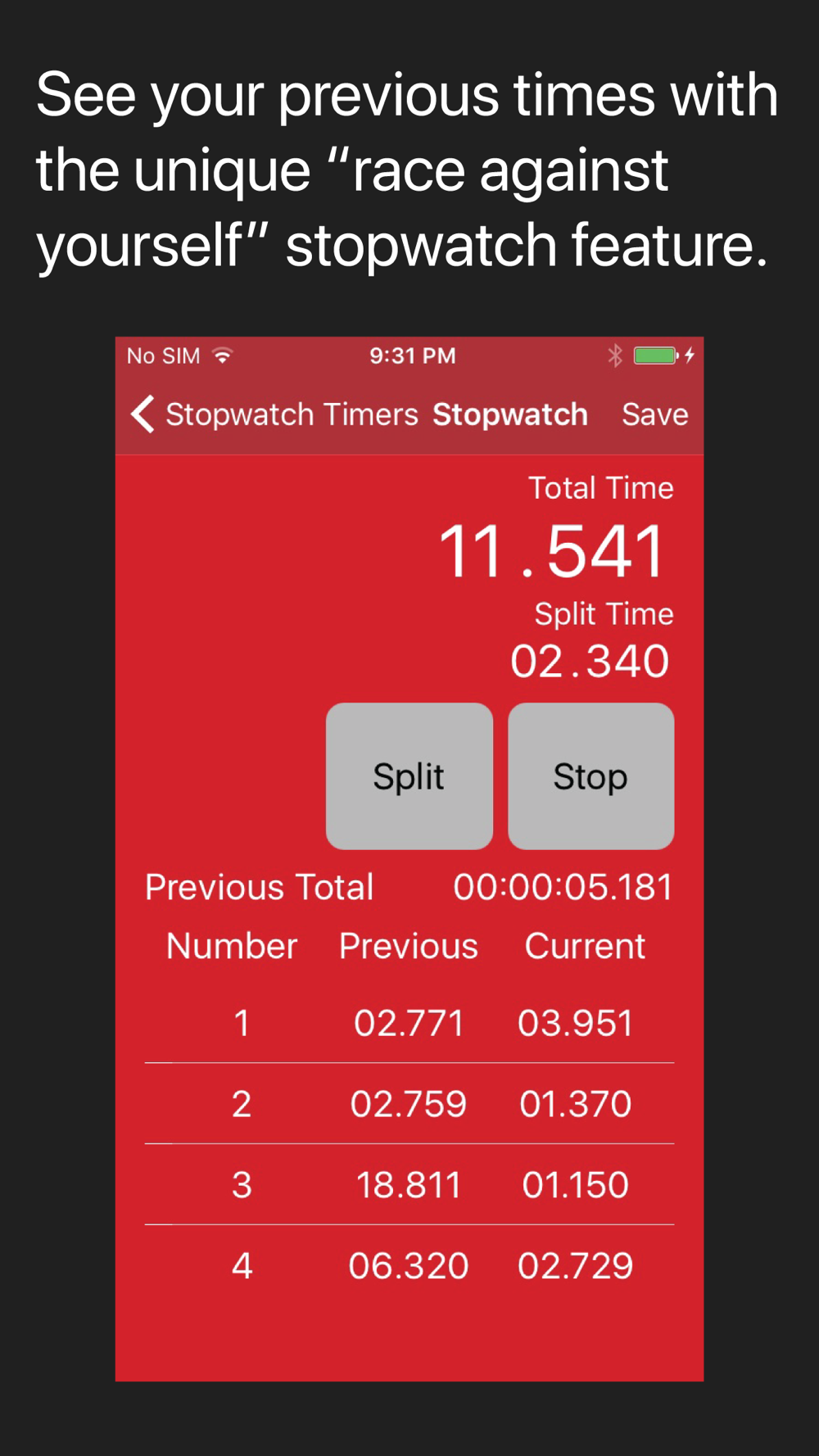 Keep track of your split and total times with the stopwatch. Save your time and then see if you can beat it the next time out.