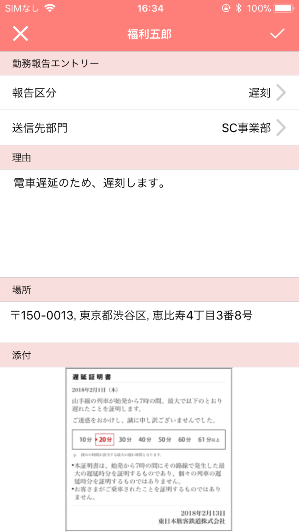 If user has immediately notice, he can send message from application such as "be late", "leave early" and "go out office".