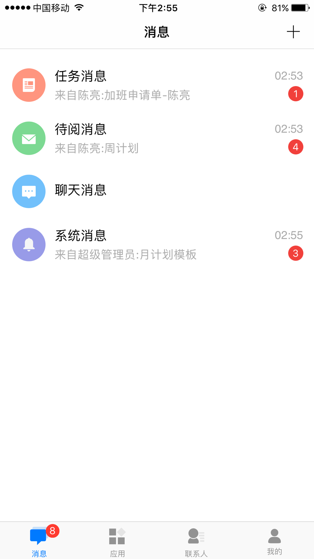 4.企业级应用中心,实现应用及功能的聚集,并支持按需扩展,解决外勤员工所有的日常工作问题;