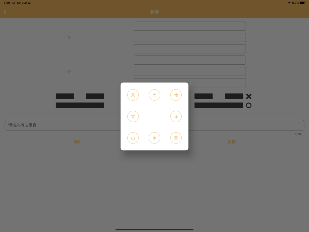2.直接点击“上卦”,“下卦”,快速选择卦象