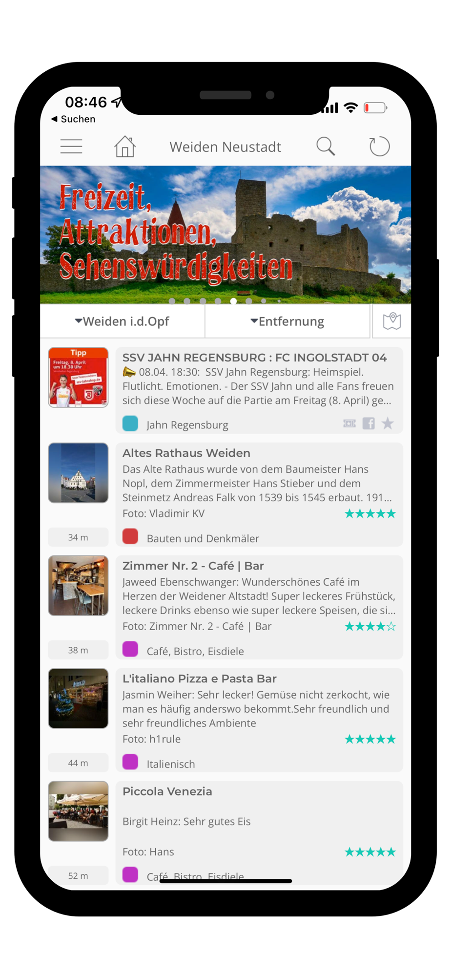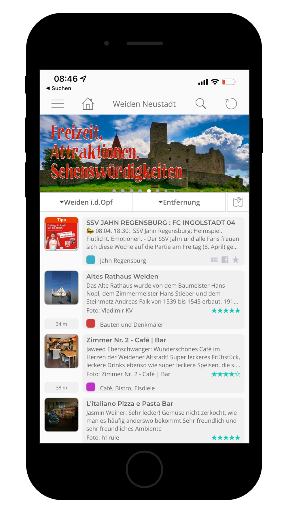 With Region Weiden you can get a glance, of what's going on in your area: all entries are registered on a map and sorted as a list by distance. With us, shop operators and owners, clubs and organizers are constantly adding news, deals, events and daily specials in the app - post and new locations are added daily.