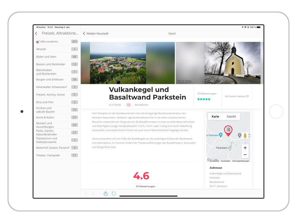 You will find here all the attractions, sights, and other important and interesting locations. The app gives free tips and suggestions on which locations you can visit. Region Weiden also offers you hundreds of constantly updated events.