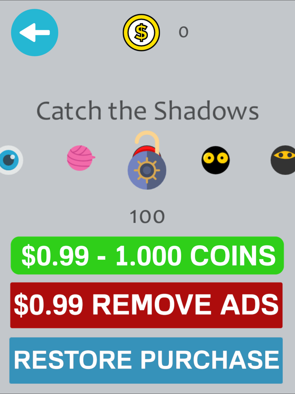 Jump on the shadows and collect as many coins as you can. Collected coins are used to unlock new characters. But be careful! The shadows are unpredictable...you should never trust them!