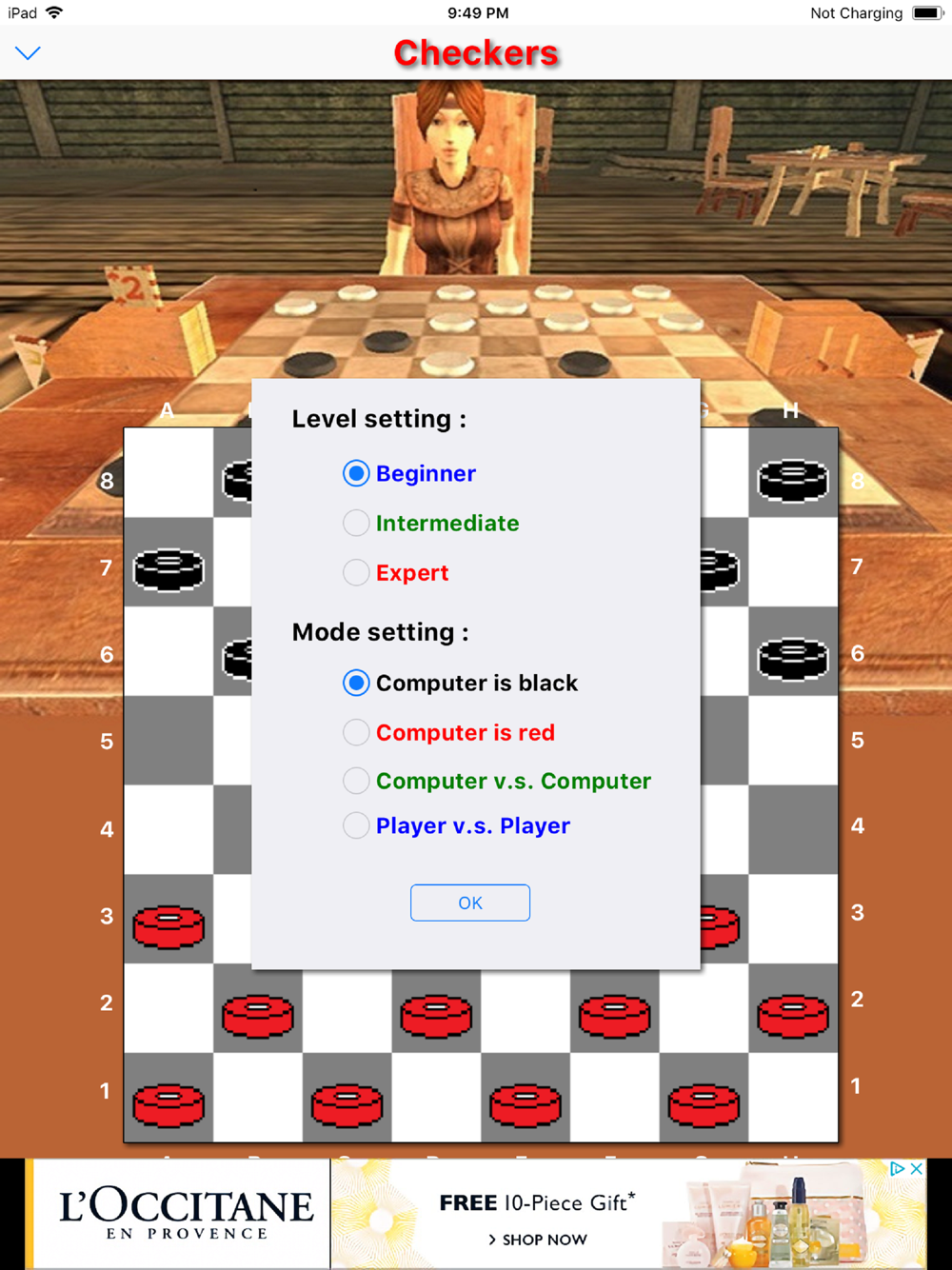 Checkers is played by two opponents, on opposite sides of the game board. One player has the dark pieces; the other has the light pieces. Players alternate turns. A player may not move an opponent's piece. A move consists of moving a piece diagonally to an adjacent unoccupied square. If the adjacent square contains an opponent's piece, and the square immediately beyond it is vacant, the piece may be captured (and removed from the game) by jumping over it.