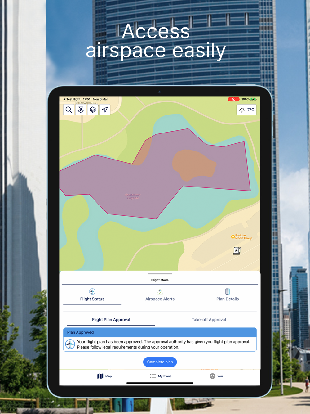 Do your pre-flight checks via the mobile app, and submit your flight plans to share your flights with other airspace users. Using Drone Assist allows you to check for any hazards preflight, and submit your flight plans, helping you stay safe and compliant when flying your drones.
