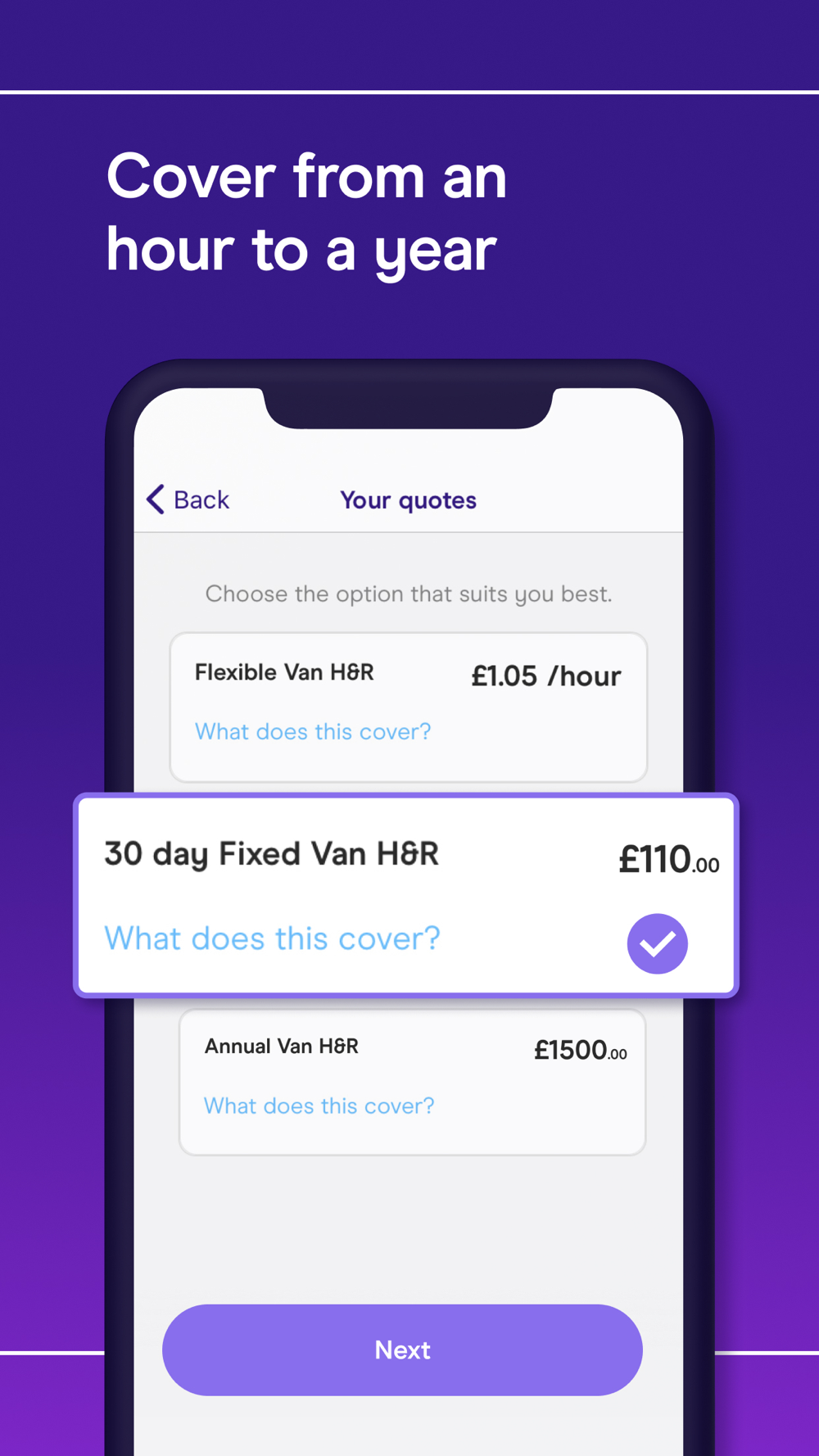 Download our app now and get a quick quote in under a minute!