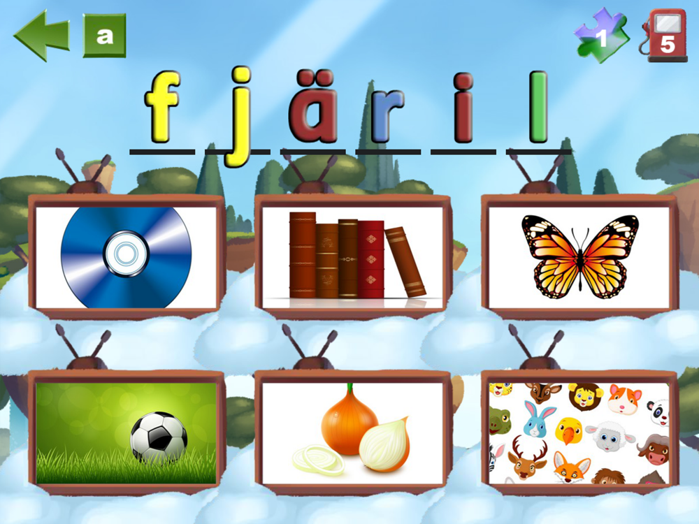 - Ljuda bokstäver och bilda ord i 5 olika nivåer