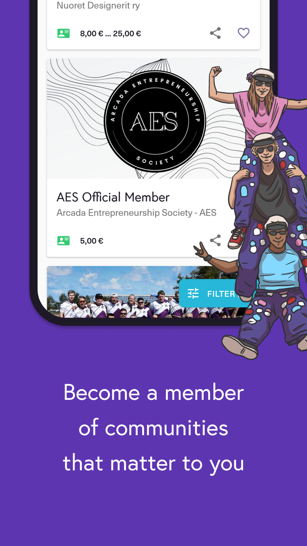 Become a member of the communities that matter to you! Already more than 300 operators sell memberships directly through Kide.app. Research and buy memberships directly from our service and enjoy membership benefits in the form of reduced prices or exclusive products.
