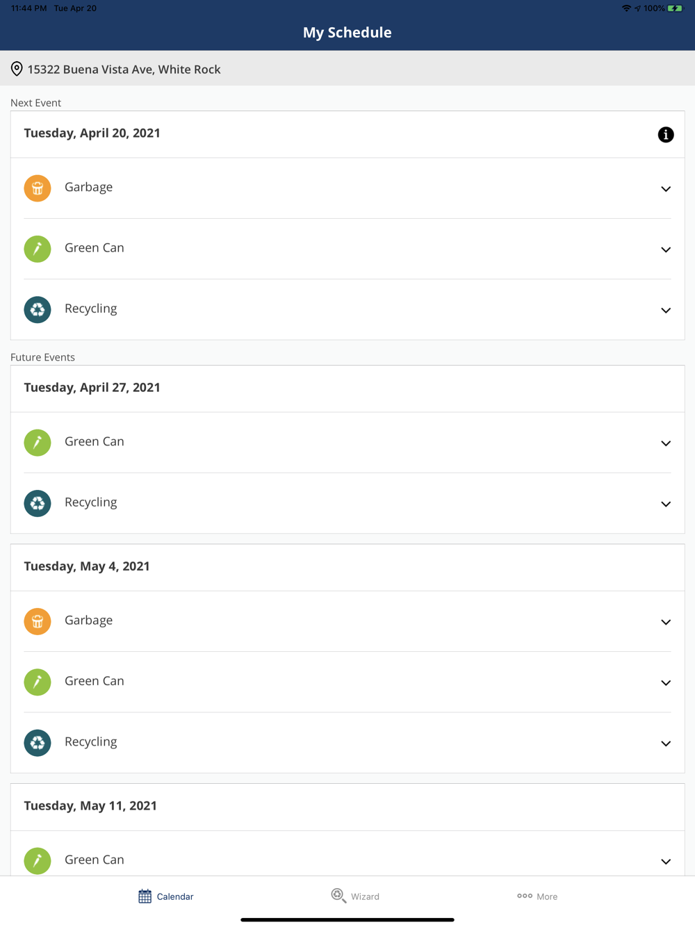 Recycling, green can and garbage schedules and reminders for City of White Rock, British Columbia. View your garbage and recycling schedule and receive collection notifications all from within this app.