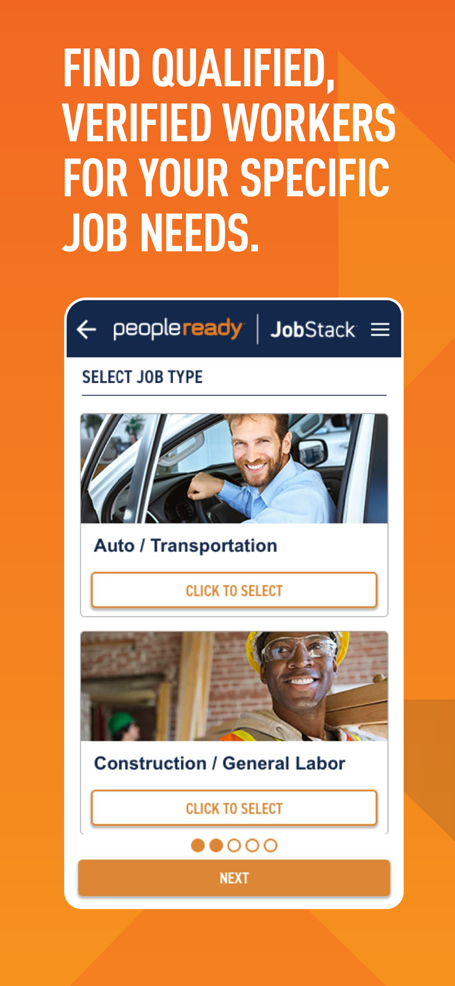 Start hiring today! Download PeopleReady's staffing app, JobStack to manage your on-demand workforce and start placing orders to experience the benefit (and peace of mind!) of 24/7 access and flexibility today.