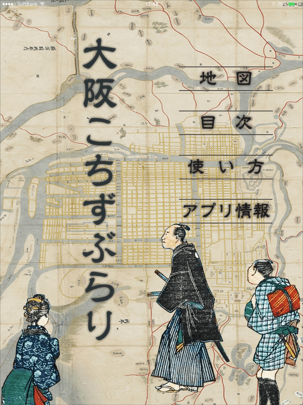 「大阪こちずぶらり」とは17世紀から20世紀にかけて描かれた5枚の地図を収録したちずぶらりシリーズの大阪版です。