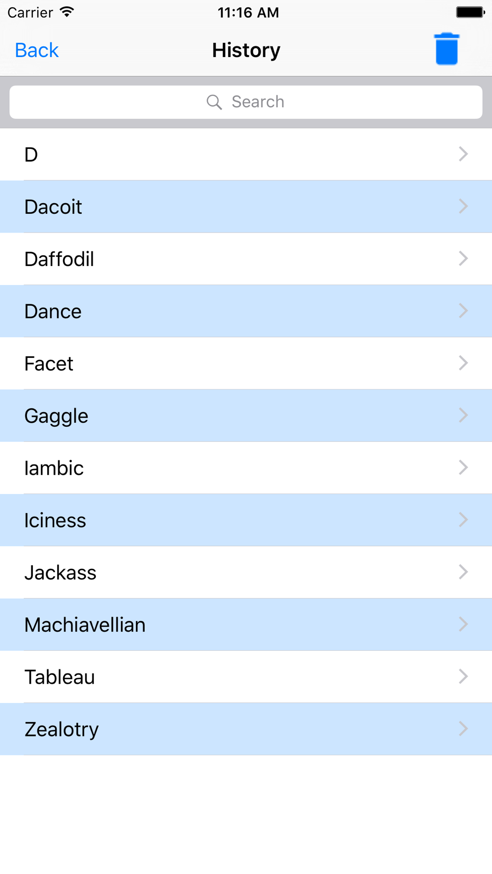 This dictionary provides meanings of English words in Urdu and Hindi.