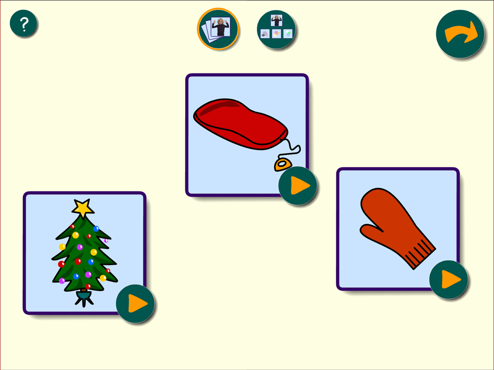 Appen innehåller tecknade ord för saker som har med vinter och jul att göra. Orden kommer från appen Teckenskatten som innehåller fler kategorier av ord.