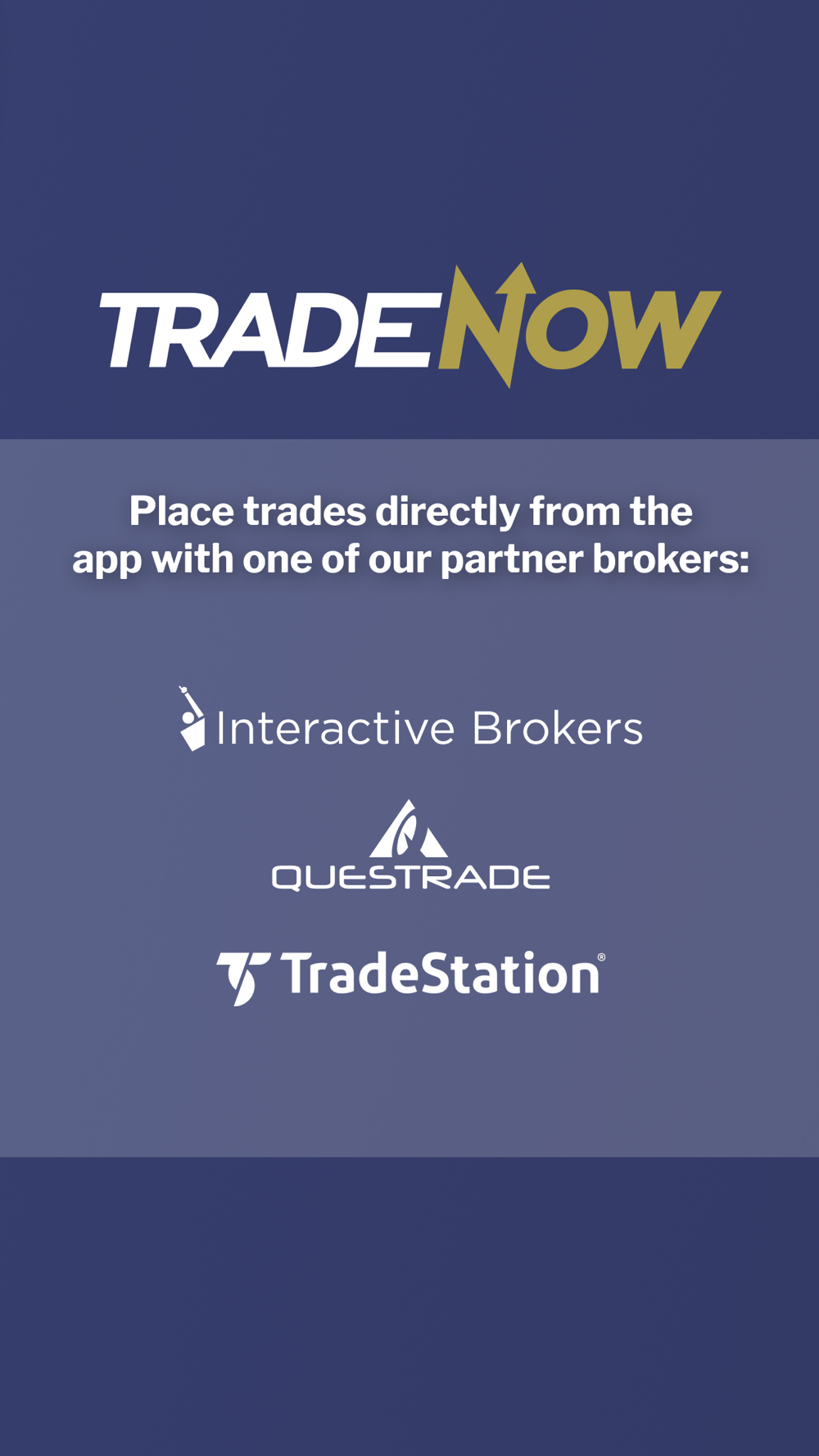 Pick tomorrow’s winners today with the VectorVest Stock Screener! Whether you are conservative and focused on safety and dividend income, or aggressive and crave the action of a volatile stock, we have a screen for you. With just one tap, we will instantly scan through thousands of stocks to deliver the best potential picks for your portfolio. PREMIUM STOCK WATCHLISTS Where do you turn to find stocks? The internet? TV? Newsletters? They usually only cover a handful of stocks and can’t keep up with live, intraday market action. Now, you have access to a better source. TRADENOW Trade directly from the VectorVest Mobile App with TRADENOW. TRADENOW is integrated with Interactive Brokers and TradeStation in the U.S. and with Questrade in Canada.