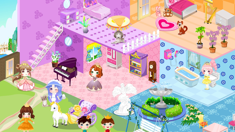 You are a little princess, you have a chance to renovate their own room, how do you want to design your room, every child dreams of a beautiful doll house, can have a kitchen, bedroom, living room, Gym, garden, etc., come to this new doll house according to their favorite look like to design it, install all kinds of items to your room inside, make it look more beautiful, more fashionable, the game is suitable for children to play yo .