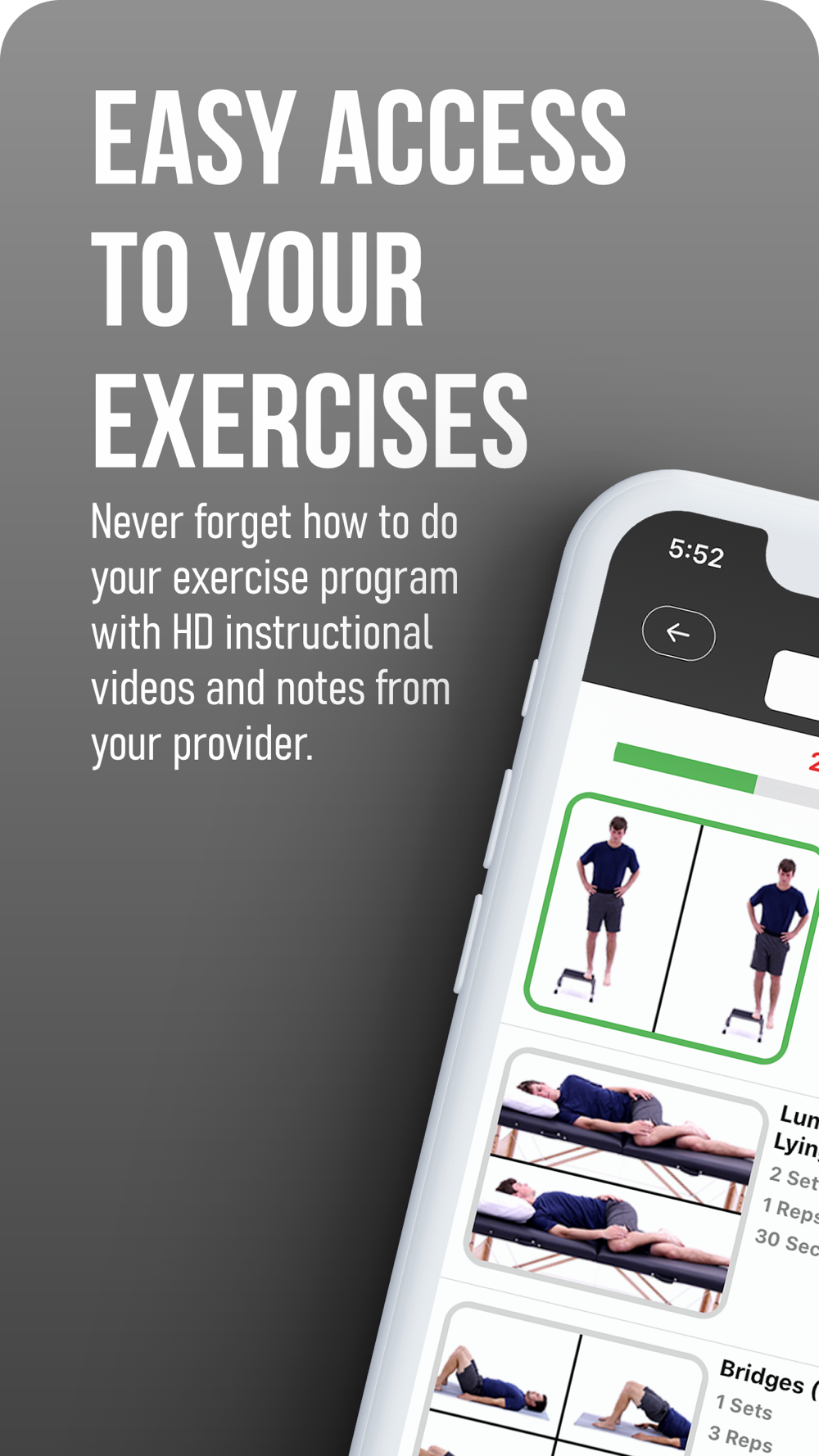 Using this app, you can access your personalized Home Exercise Program with HD Instructional videos. On the 'Messages' tab, you can securely communicate with your PT Wired provider. As you complete your exercises, we'll give you trophies and medals to celebrate your progress!