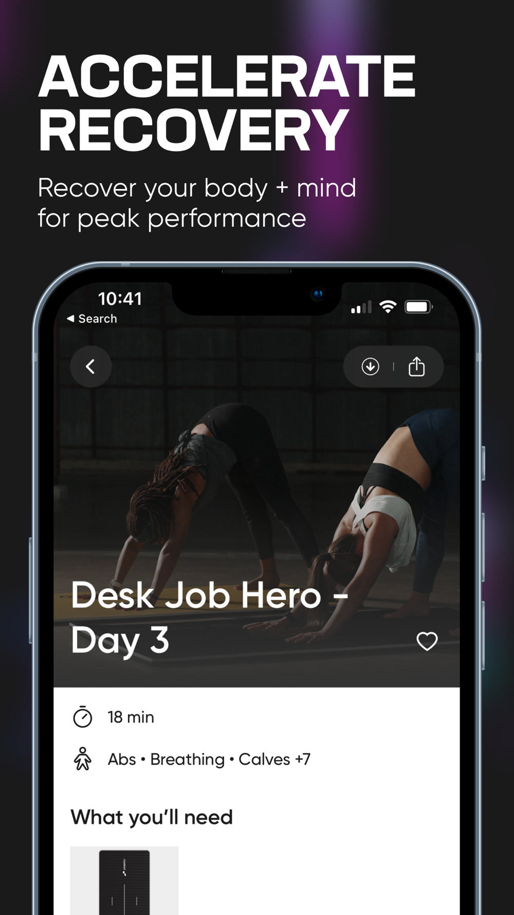 Our guided routines help you rest and recover not just your body, but also your mind. Breathing cues and mindfulness prompts help you achieve a flow state during your recovery.
