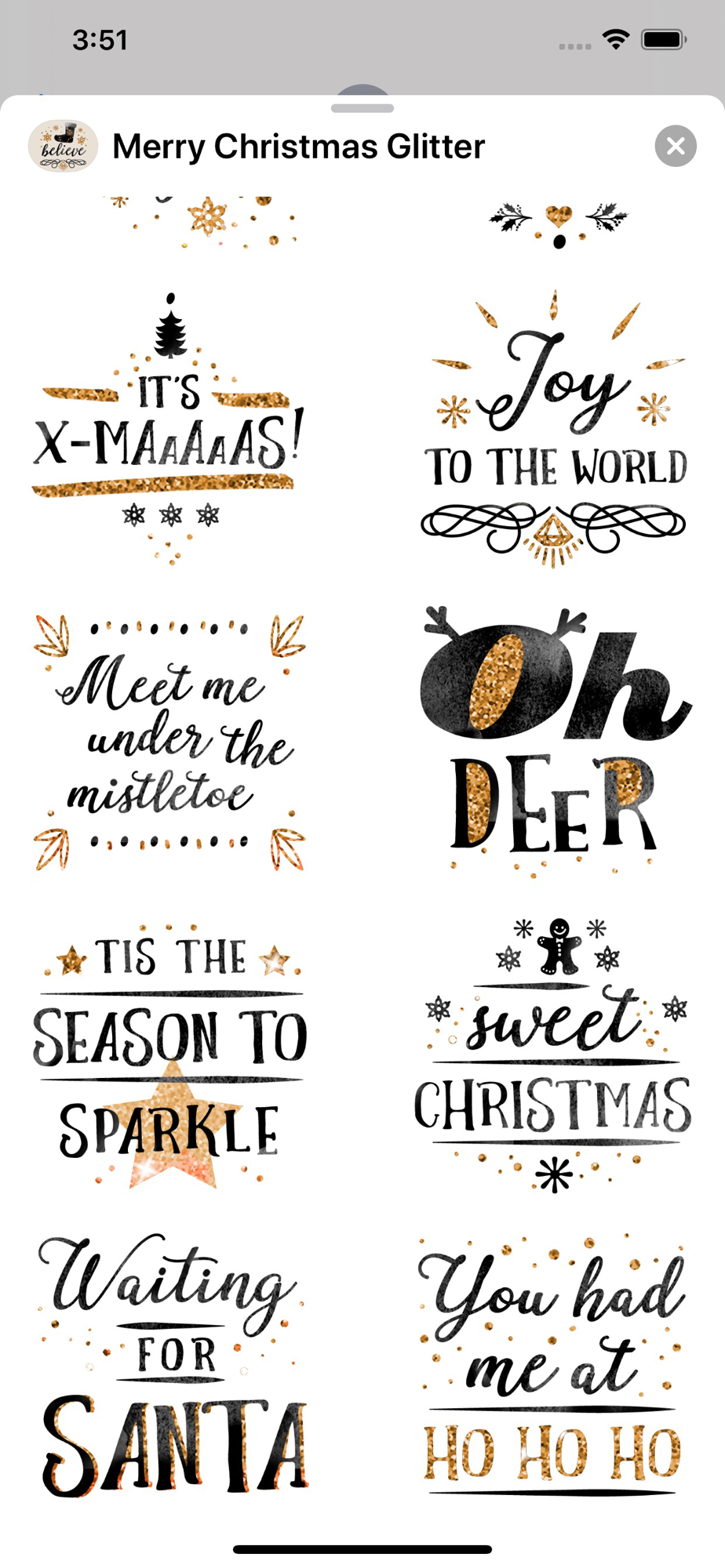 Ho ho ho! With this animated sticker-pack of glittering emojis you brighten up the time of advent for you und your friends. You can peel and place the stickers on anything in your conversation – images, bubbles, or even other stickers.