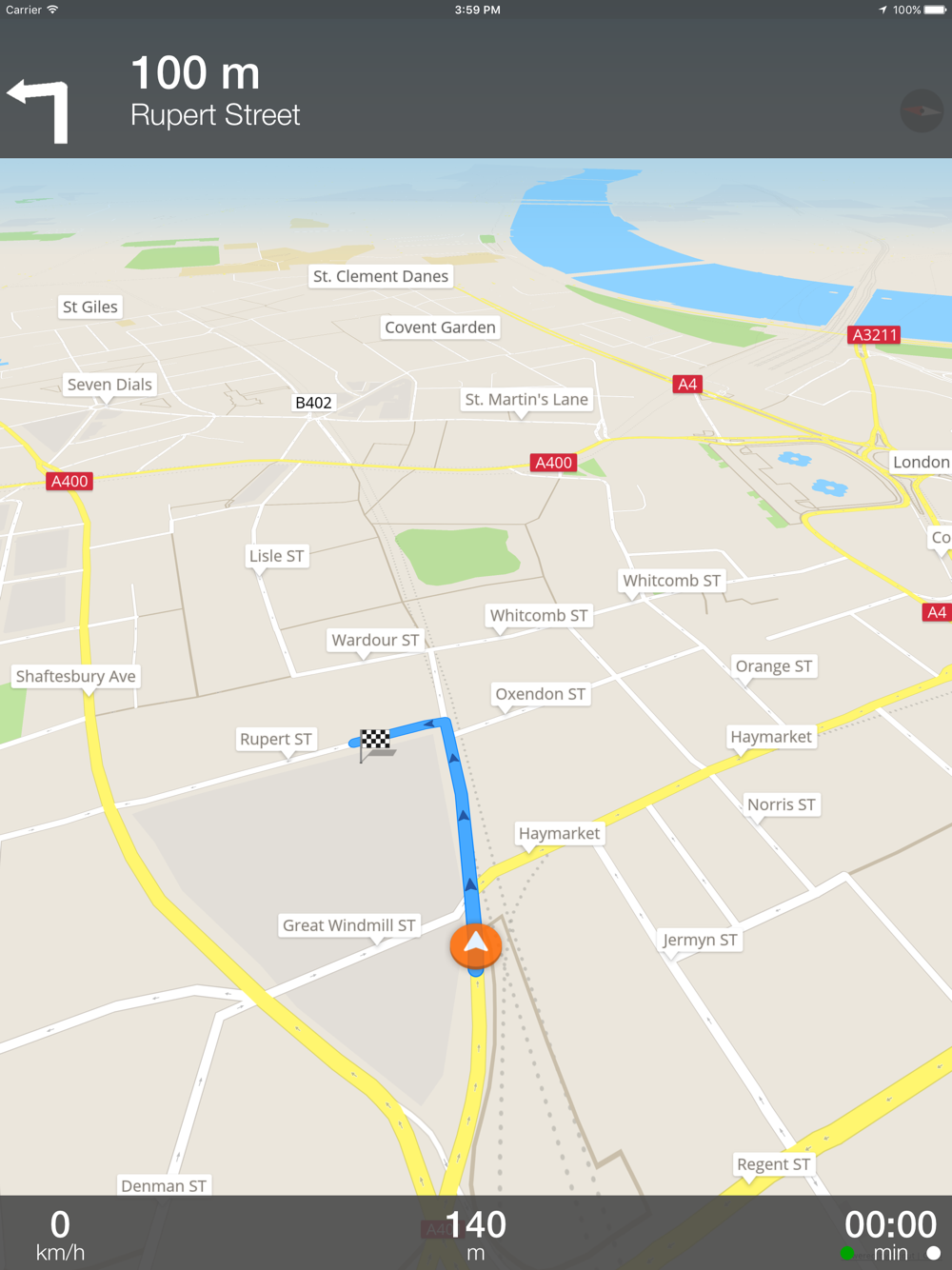 - Always the shortest and safe route for pedestrians, cyclists and cars with indication of distance and time of arrival.