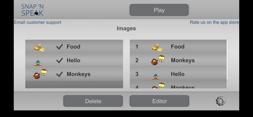 Snap 'n Speak is a tool for teaching, communication, and object identification. It allows you to create and use multiple visual scene displays that are customizable. Snap a picture, search for a picture in your photo library, or select an image from the web and create multiple communication spots or hot spots. Hot spots can be visible or invisible and allows the addition of auditory and visual cues. You can now share the communication boards you make with others, using Airdrop or email.