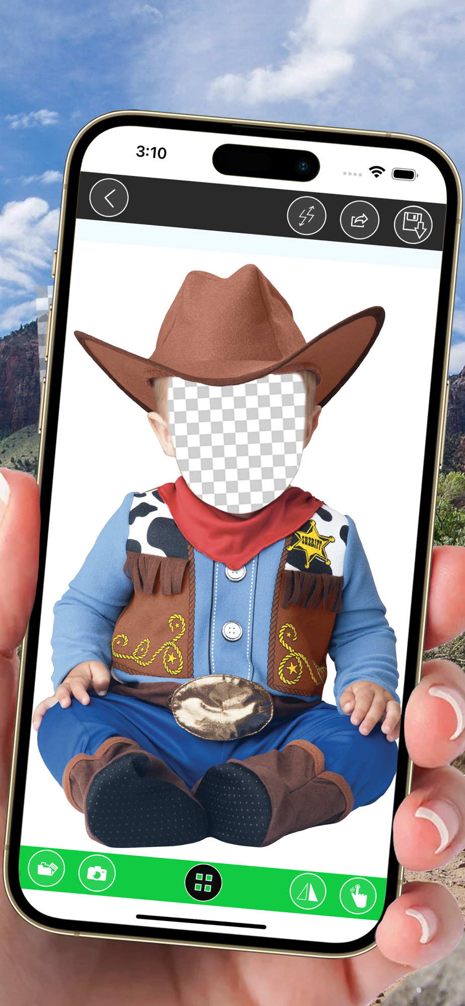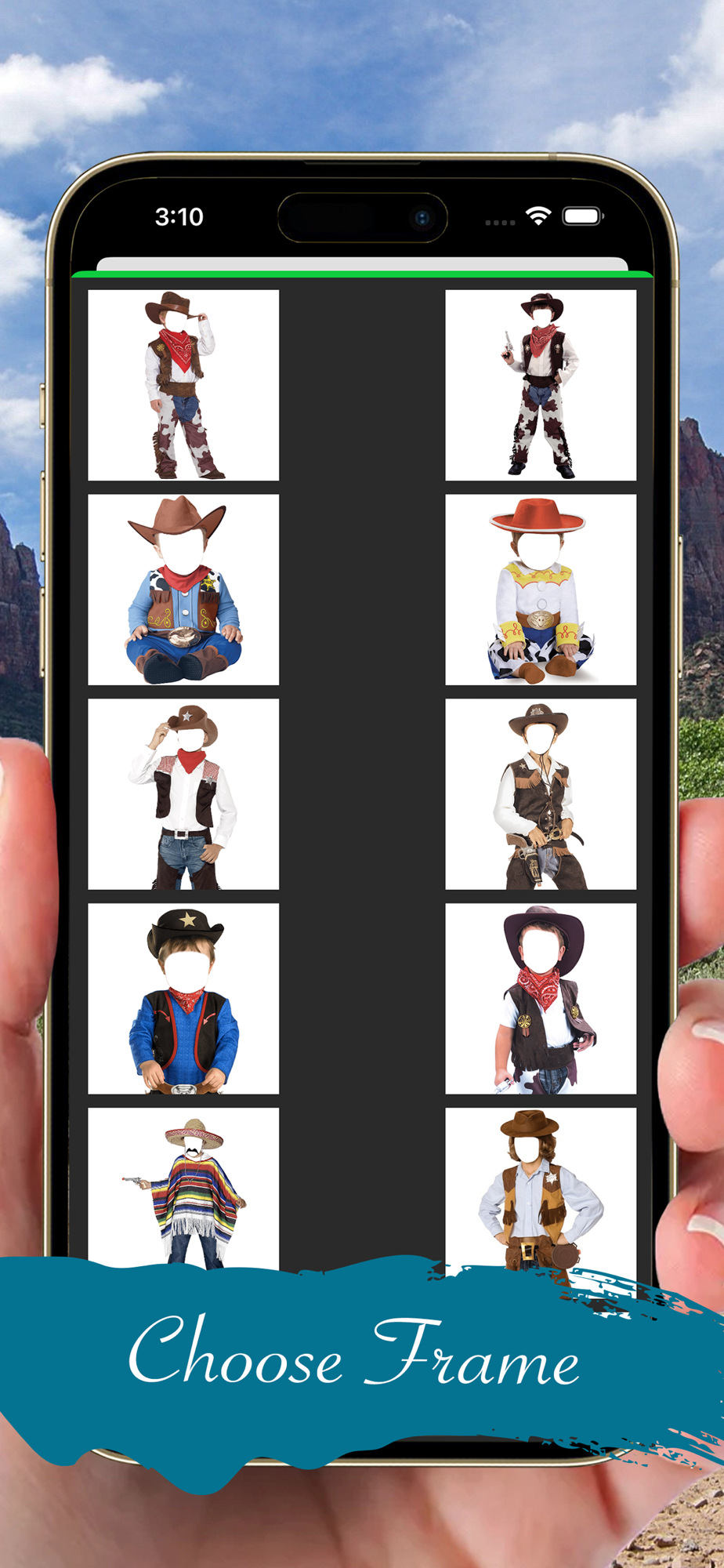 Dress up as genuine cowboy with this app! Have fun choosing the best western cowboy costumes for your kids from the vast collection in this app. Spend countless hours perfecting your kids pose to suit the cowboy photo montage. Save all the pictures of your kids in the cowboy costumes inside the app! Have fun and play around with it.