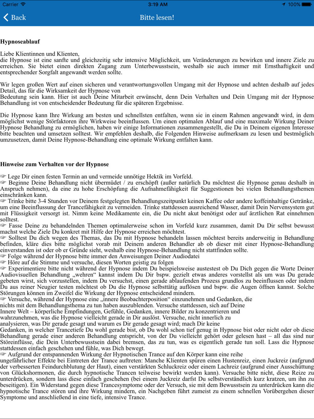 Wir wünschen Dir viel Erfolg mit Deiner Selbsthypnose-Behandlung!