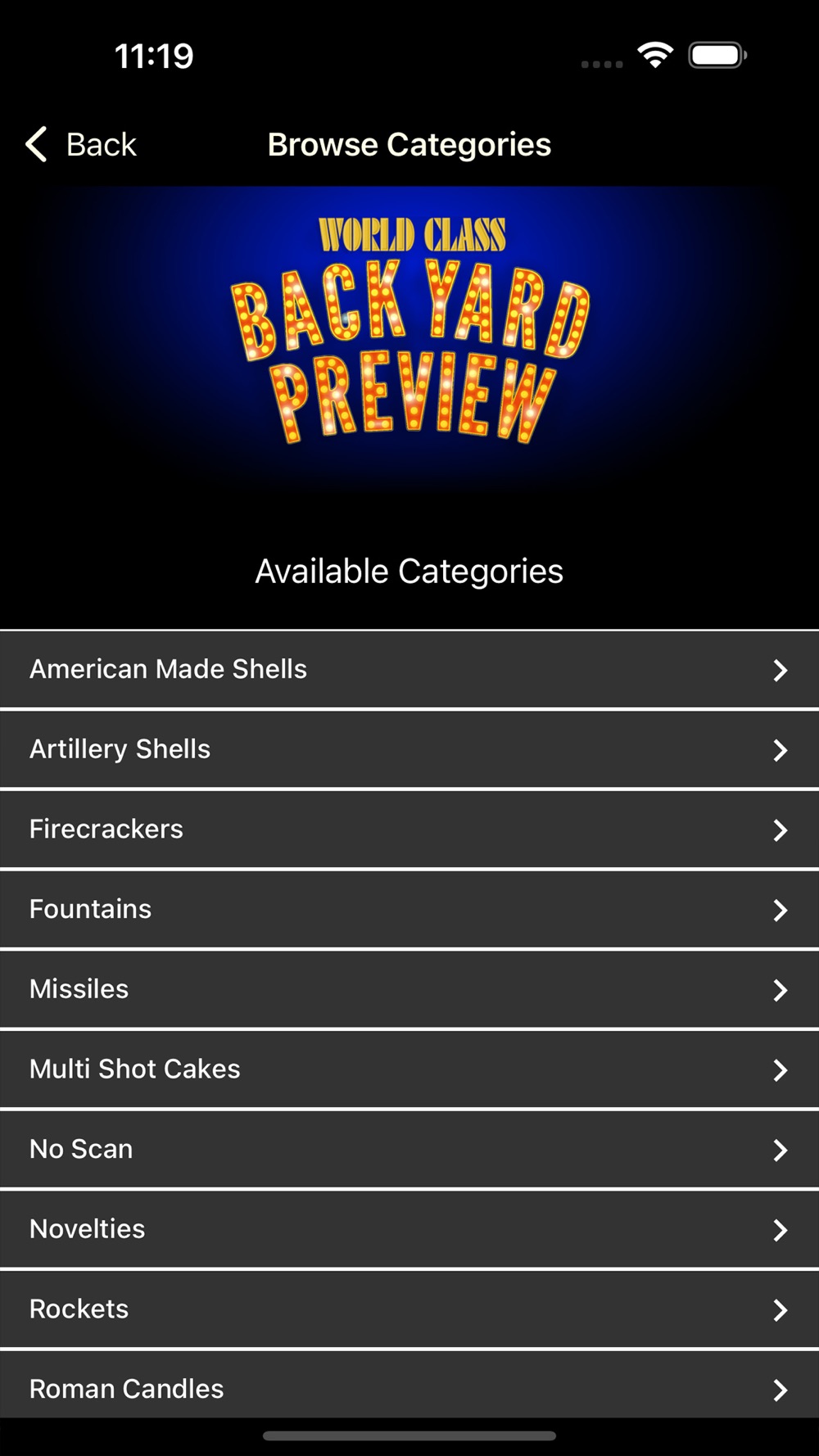 The World-Class Fireworks Back Yard Preview app lets you preview your favorite fireworks from your screen before you buy – any time you want. Just scan a World-Class fireworks product in any store that carries them and a hi-def product demonstration video will play. You can even save videos as favorites for later or share with friends!