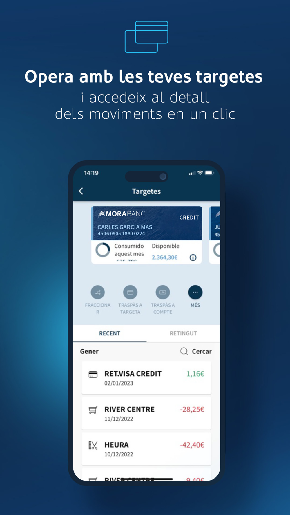 Download the MoraBanc mobile application: manage your accounts at any time and from anywhere and do all your day-to-day banking easily and conveniently.