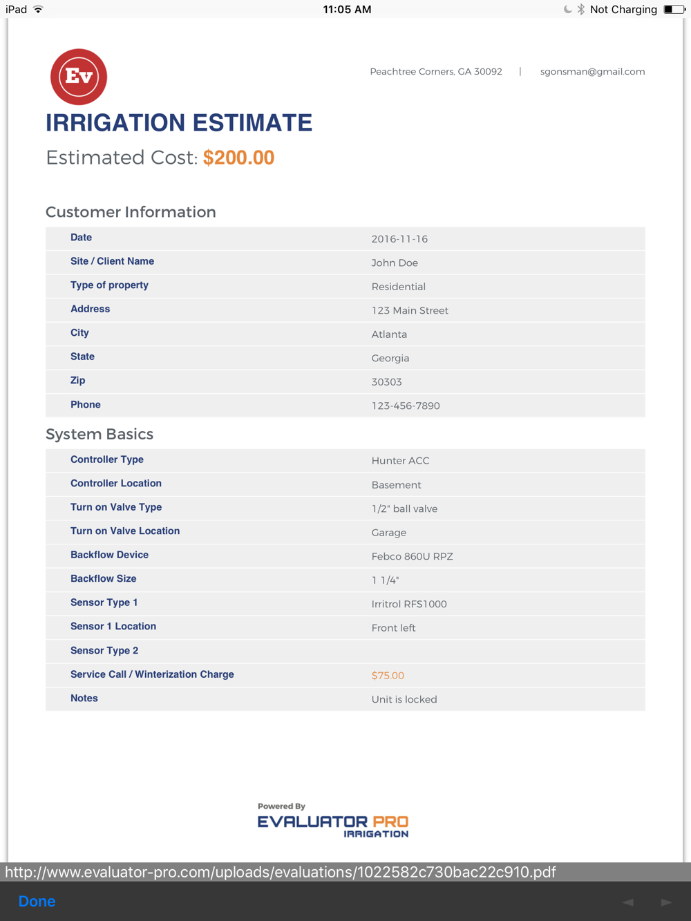 Evaluator Pro: Irrigation is a smartphone mobile application designed specifically for the irrigation industry. Users can navigate through pre-loaded dropdown menus to evaluate irrigation systems like never before. Audit, propose, & email detailed proposal reports in seconds... all while on site!