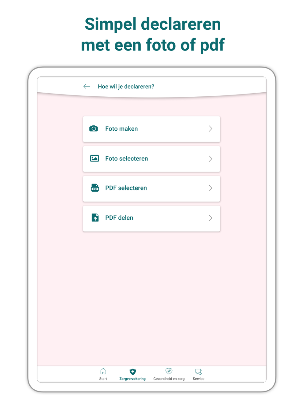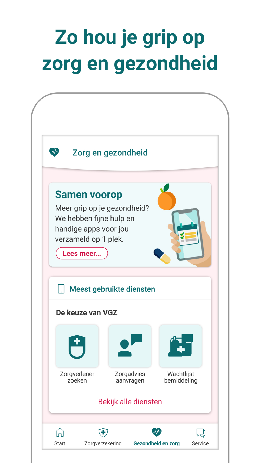 Daarom kun je met de VGZbewuzt app declareren in een paar eenvoudige stappen. Ook zie je in de app wat je dit jaar vergoed krijgt voor bijvoorbeeld fysiotherapie en de tandarts. En wat de stand van jouw eigen risico is. Zorgkostenfactuur gekregen? Die betaal je direct vanuit de app via iDEAL. En een fijn idee: je hebt jouw zorgpas en polis nu altijd bij de hand.