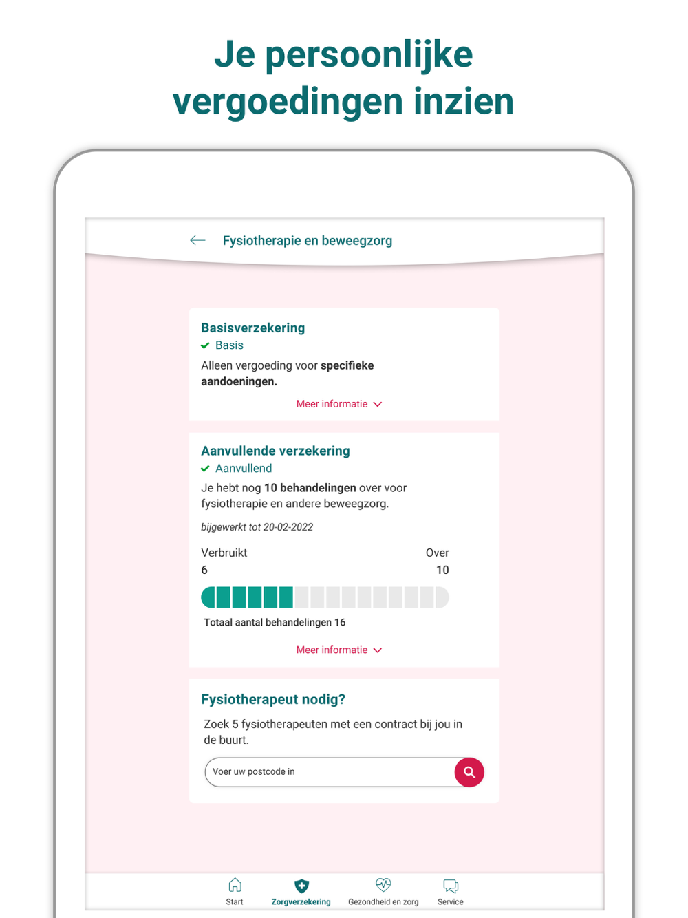 - Altijd een overzicht van jouw verzekeringspakket en de meest gezochte vergoedingen