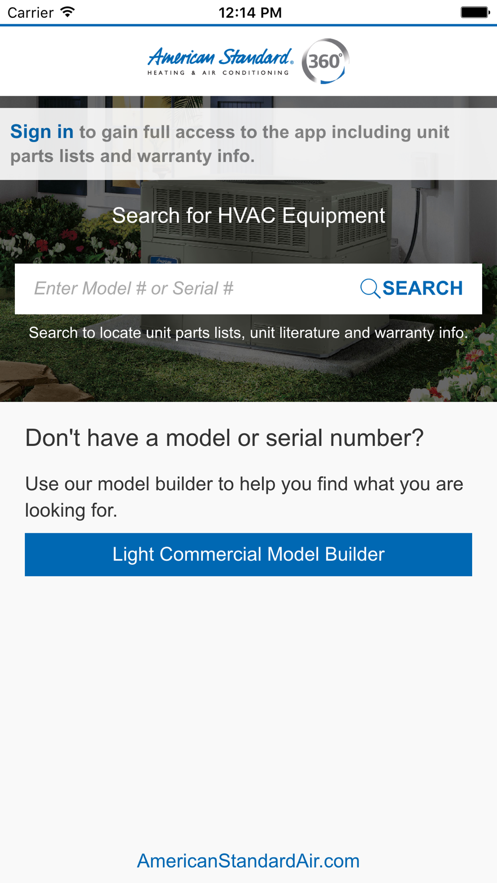 American Standard Air 360° is designed for on-the-go HVAC sales and service professionals that already do business with American Standard through ASDealerNet and provides easy, instant access to all the information needed to sell American Standard HVAC equipment or complete repair jobs quickly and efficiently!