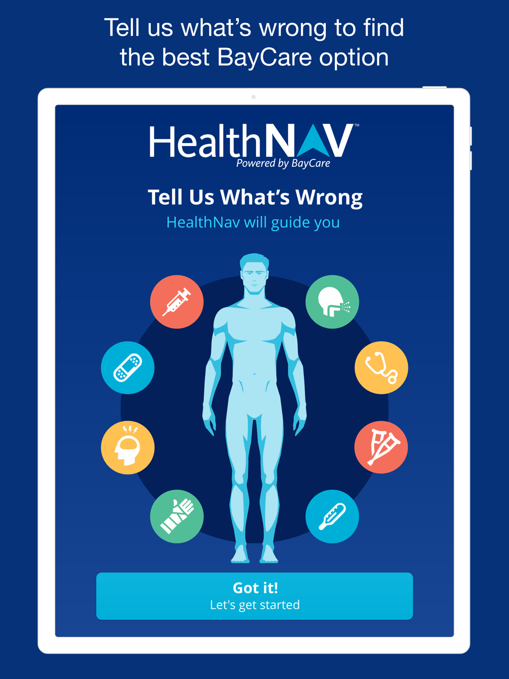 HealthNav is a free app that lets you enter your symptoms and recommends the best place to go for treatment. And we’ll even show you how to get there. HealthNav offers you these great features: