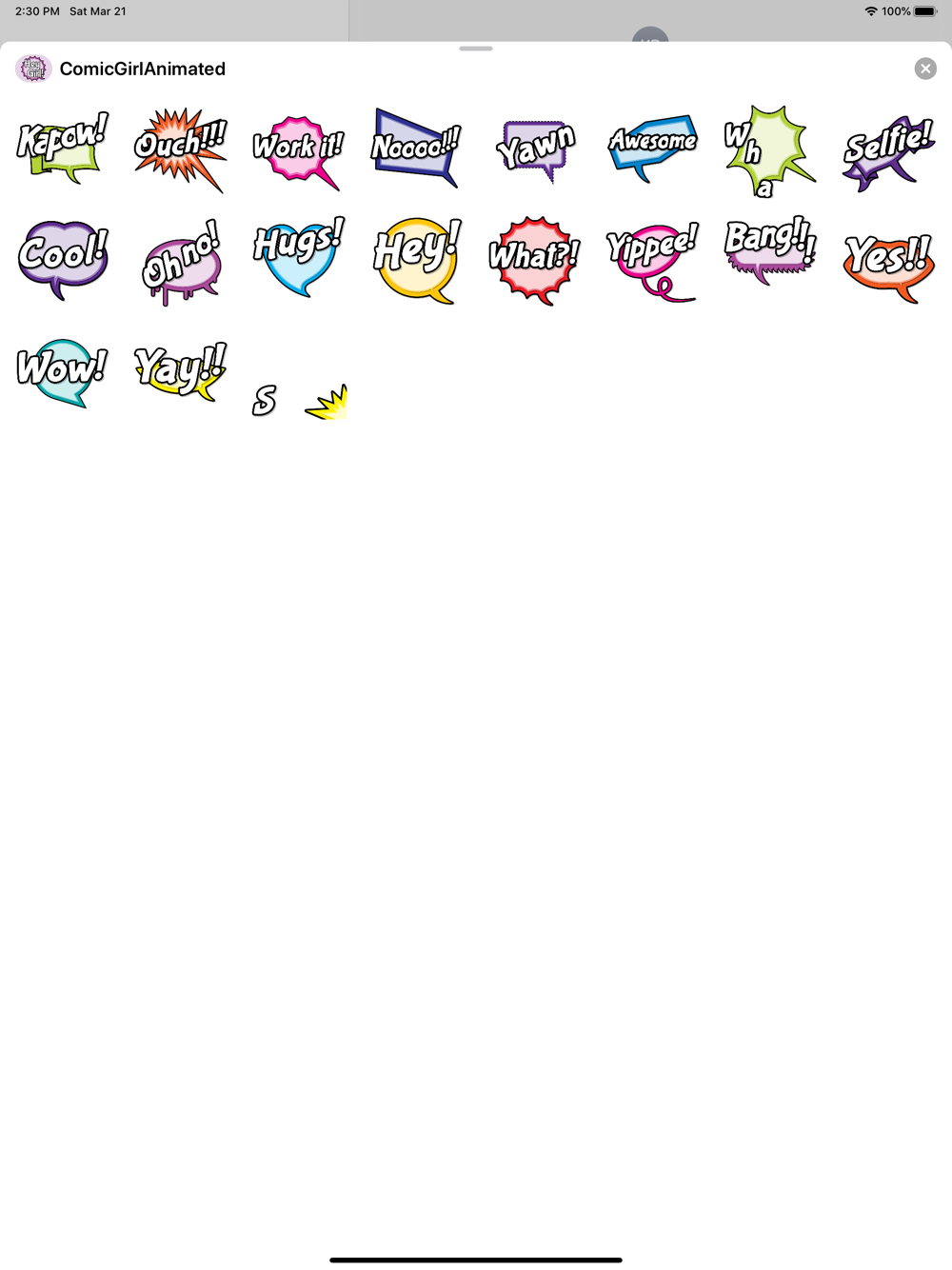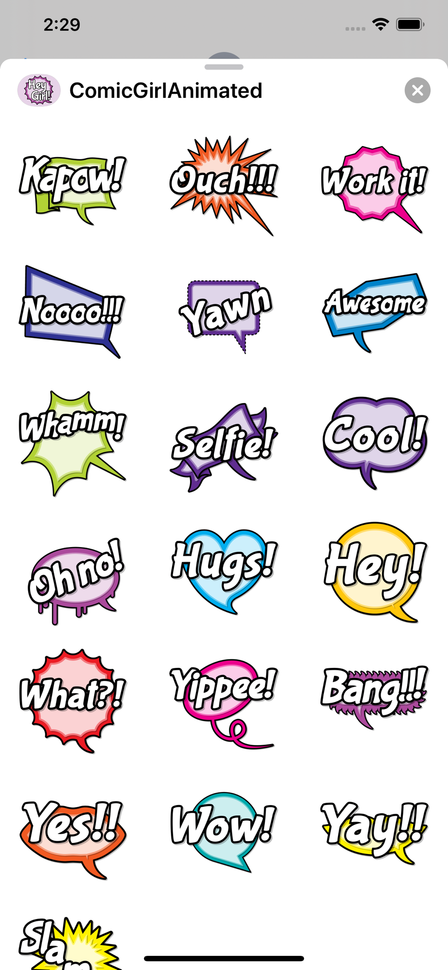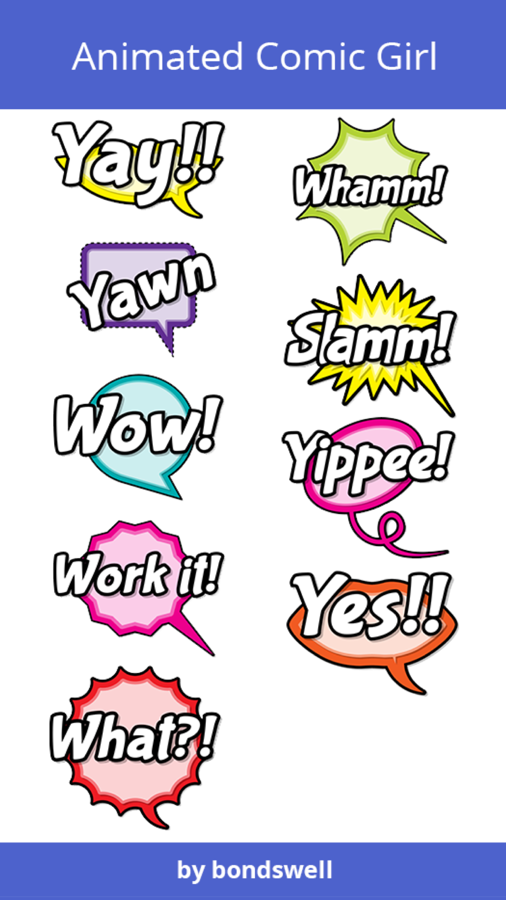 Comic Girl Animated is a fun, empowering set of stickers for women. All the words are consciously chosen to empower you. This is a set of 19 awesome animated stickers!