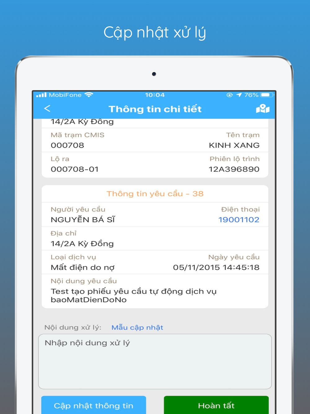 Có chức năng trao đổi thông tin với hệ thống chăm sóc khách hàng hiện hữu giữa trung tâm chăm sóc khách hàng, công ty điện lực và khách hàng. Giúp cho việc theo dõi tiến độ xử lý các trường hợp sửa chữa điện môt cách nhanh chóng, chính xác và kip thời.