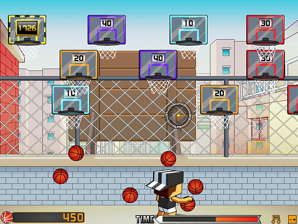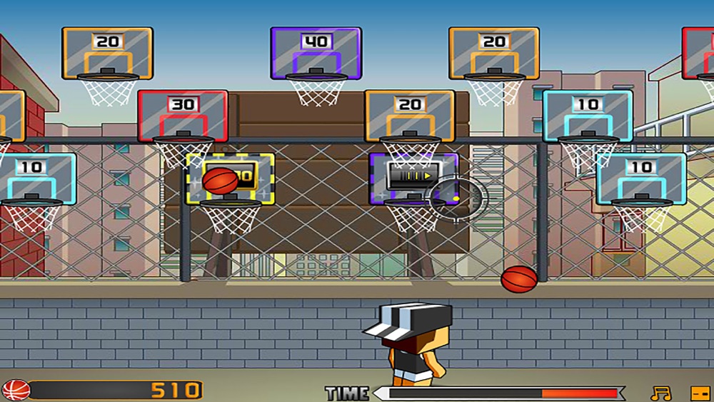这是非常好玩有趣的!每一个篮框都会有一个对应的积分值,还有额外的一些特殊篮框,会给你一些特殊的技能特效和分数,比如,大灌篮,时间延迟,和三倍,以及多球投篮。