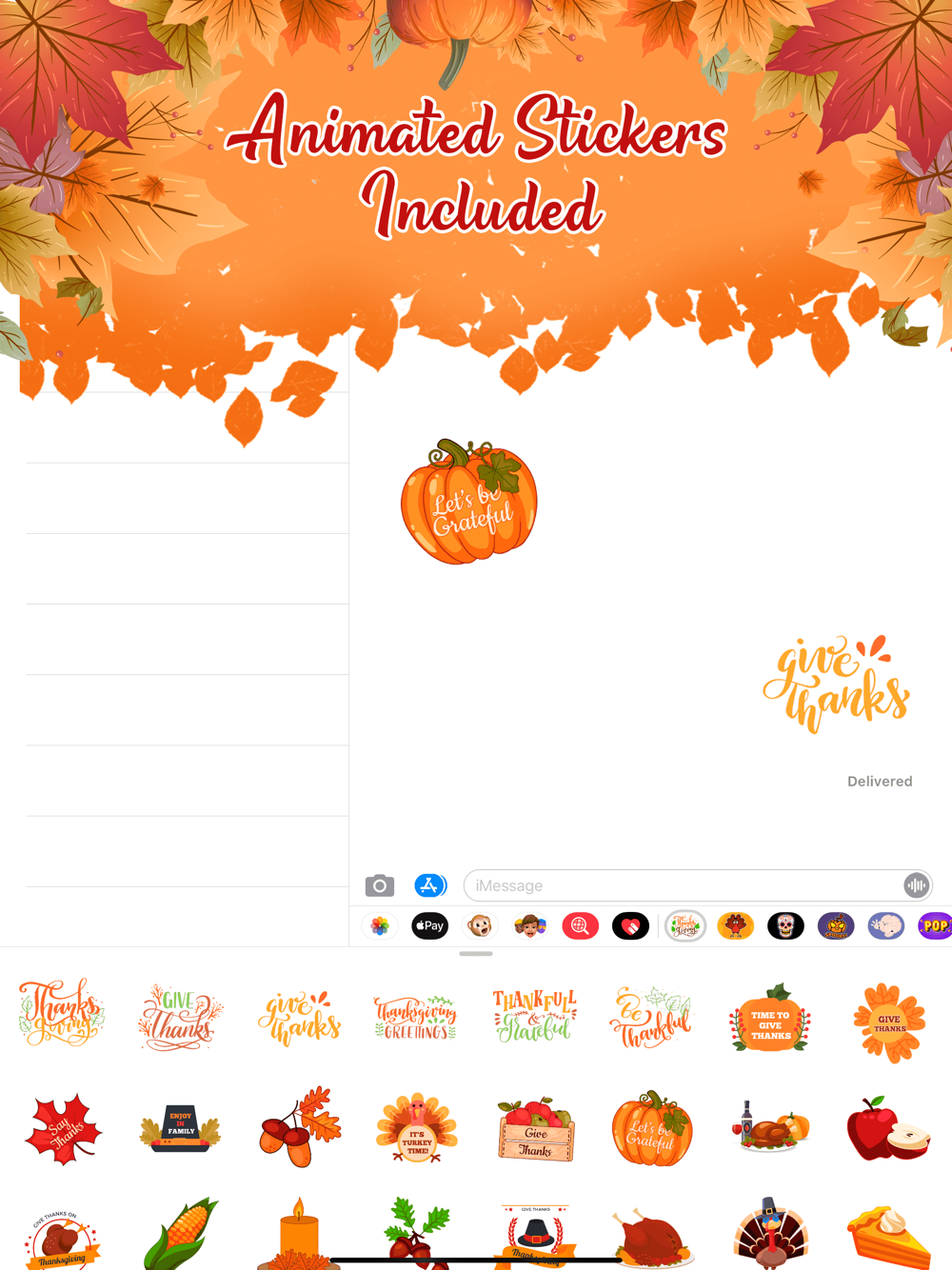 There is a wide variety of Thanksgiving Day Stickers you can choose from this app. Peel and stick them over other conversation bubbles, images, photos, even on other stickers.