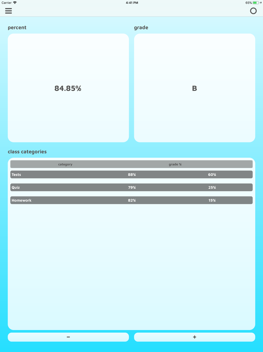 Calculate your grade for classes with weighted categories. The struggle is no more.