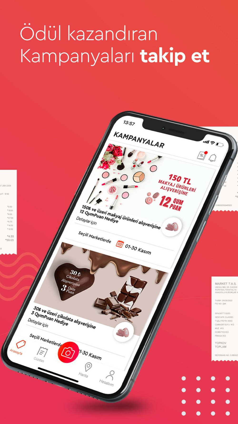 Qumpara ile yaptığın alışverişin fişinin fotoğrafını çek ve gönder. Fişin otomatik olarak okunacak ve sana uygulama içerisinden bilgi vereceğiz. Eğer gönderdiğin fiş kampanya kurallarına uygunsa ödülünü hemen kazanabilirsin.