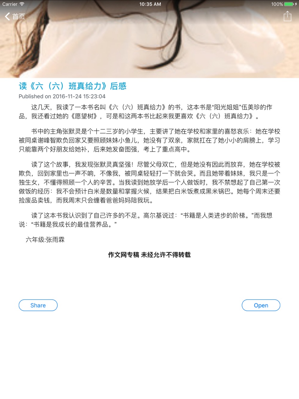 我们精选了最优秀的作文范本,内容丰富,取材广泛,涉及小学1-6年级同学们生活的方方面面,读读这些内容,你一定会从中找到自己的影子,同时也会体验到写作的快乐,轻松愉快提高你的作文水平!