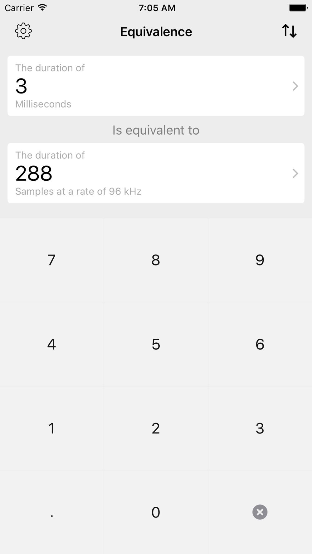 Equivalence is an incredibly simple app to convert between units relevant to audio. Go between time, samples, frames, frequency and wavelength. It's got all the stuff you need, and none of the stuff you don't. Just a clean, simple presentation of information.
