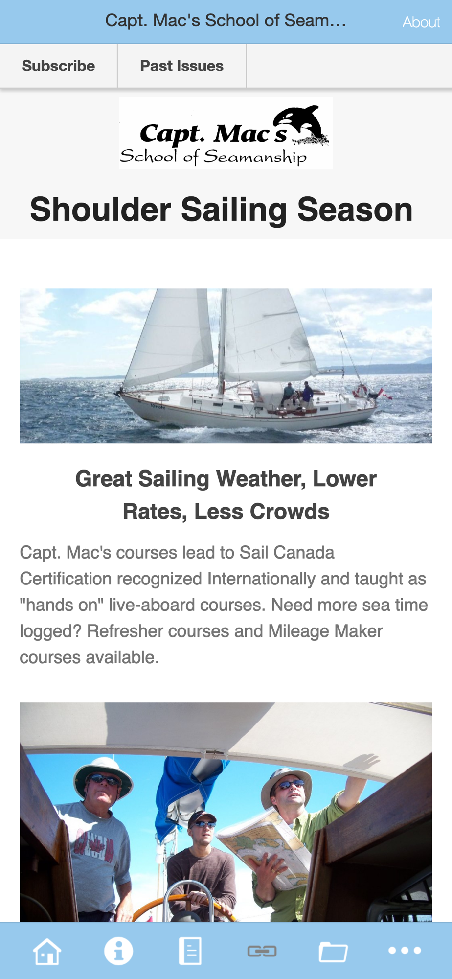 Capt. Mac's School of Seamanship provides personalized sailing lessons and sailing charters in Vancouver BC.. Our sailing courses lead to Sail Canada Certification (formerly CYA) and are taught as "hands on" in the challenging waters around Vancouver and in B.C.’s Gulf Islands. Join us on one of our five or seven day Cruise & Learn live-aboard sailing lessons to become a competent sailor ready to bare-boat charter or command a yacht of your own. Capt. Mac has been teaching live-aboard sailing lessons since 1983 and has taught and certified hundreds of students.