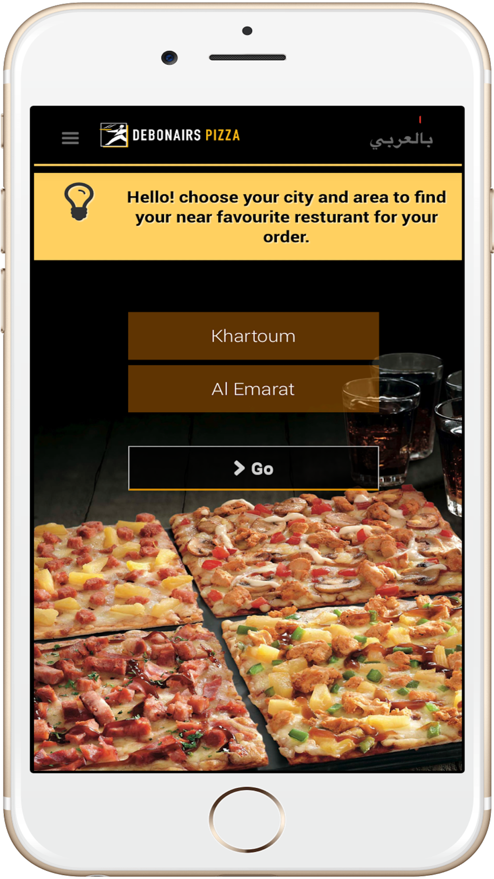 You can now order and pay for your favourite pizza through the Debonairs Pizza app in Sudan . Find your nearest restaurant, choose from our range of pizzas, subs & sides, customise your order and checkout.