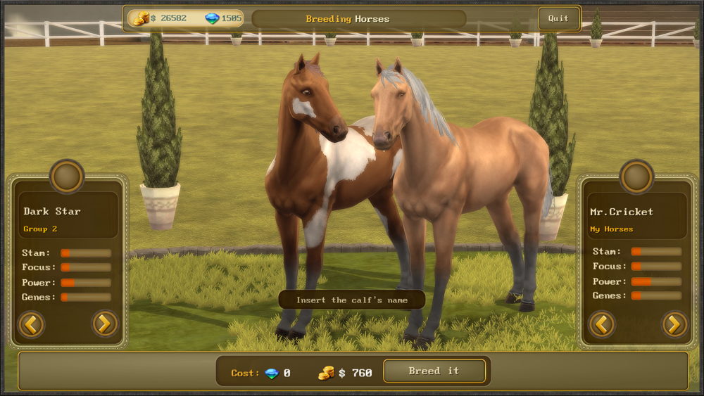 Now, the Player can care for its horses, grooming and feeding them. It would improve their attributes to achieve better results in the events.