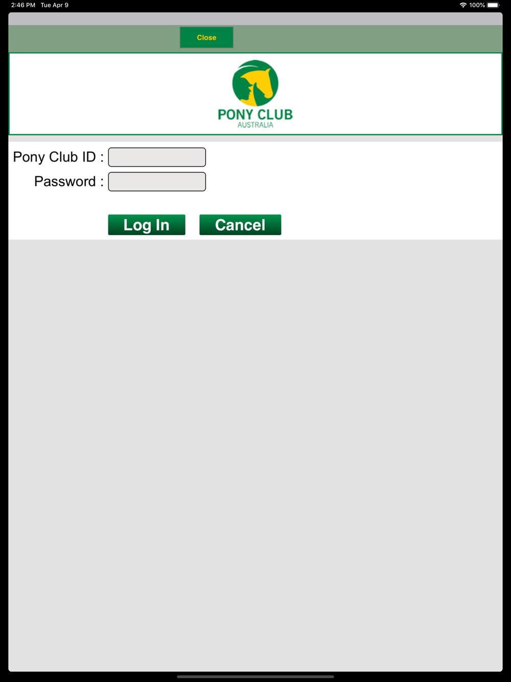 This app allows members of Pony Club Australia to show their "virtual membership card" when registering for events. Members log in and their card is shown. Contact information for Pony Club Australia is also available without logging in.