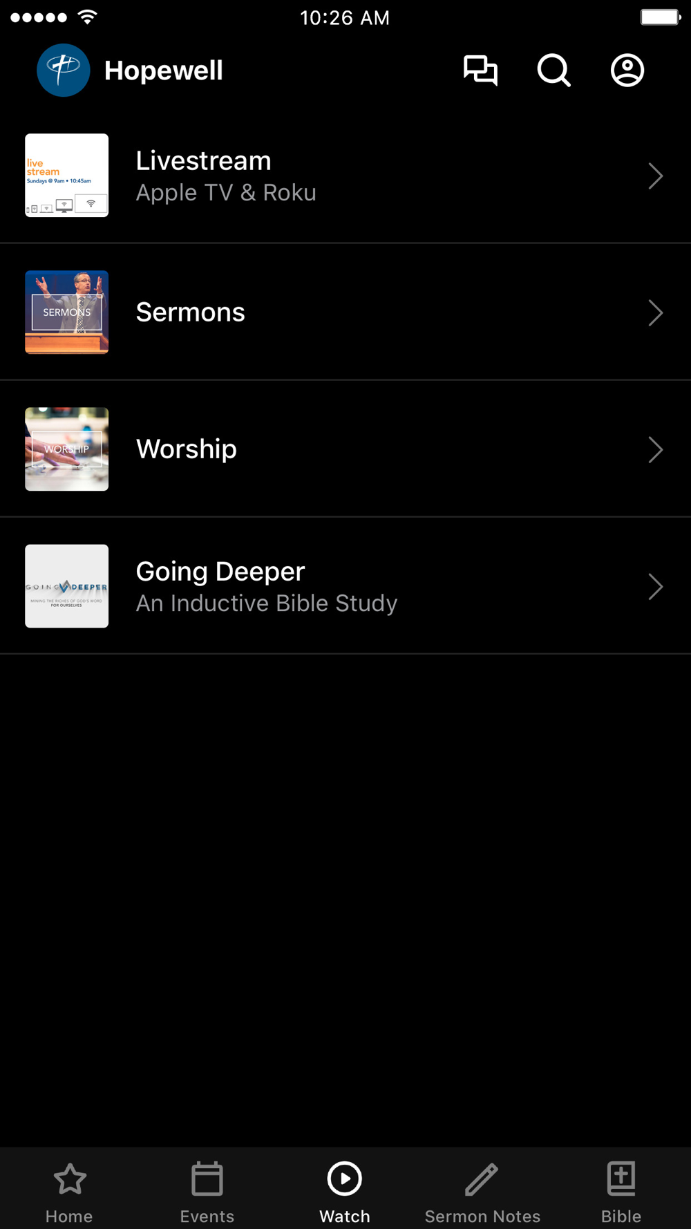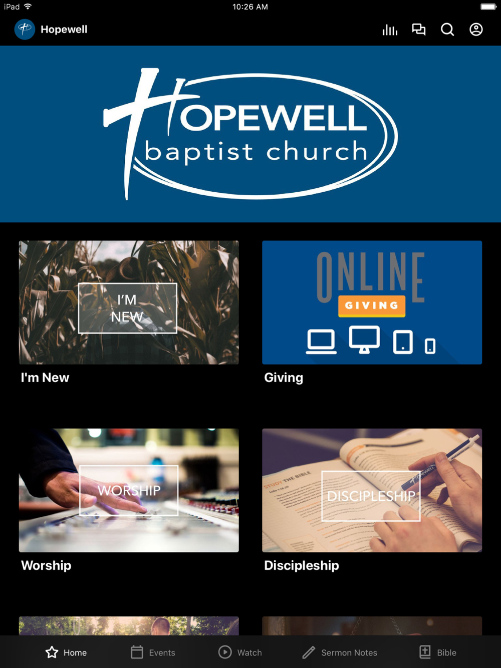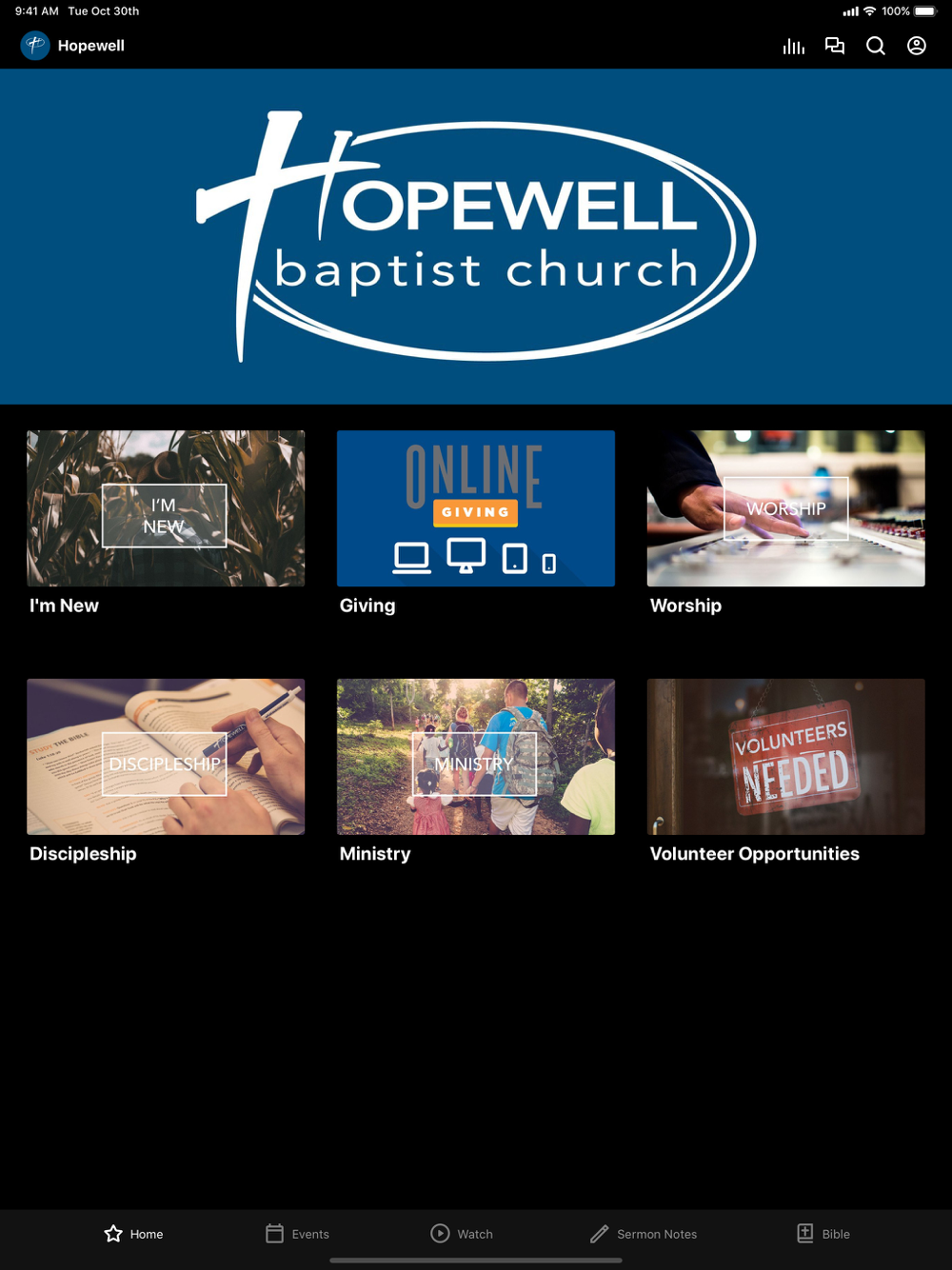 The Hopewell Baptist App was created with the Subsplash App Platform.
