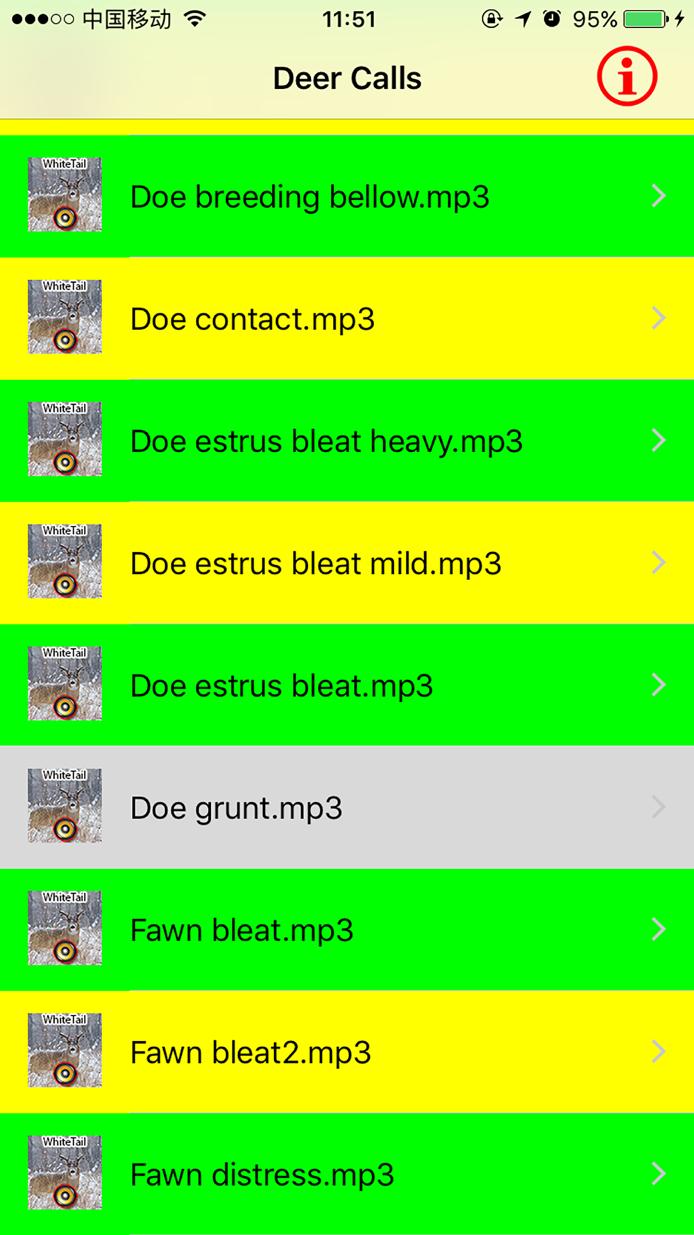 The real whitetail deer calls app provides you REAL whitetail deer hunting calls at your fingertips. These whitetail deer calls are clear, crisp and recorded from REAL whitetail deers. 21 unique deer calls included. Connect the app to your speaker and amplifier system to play the whitetail deer hunting calls loud.