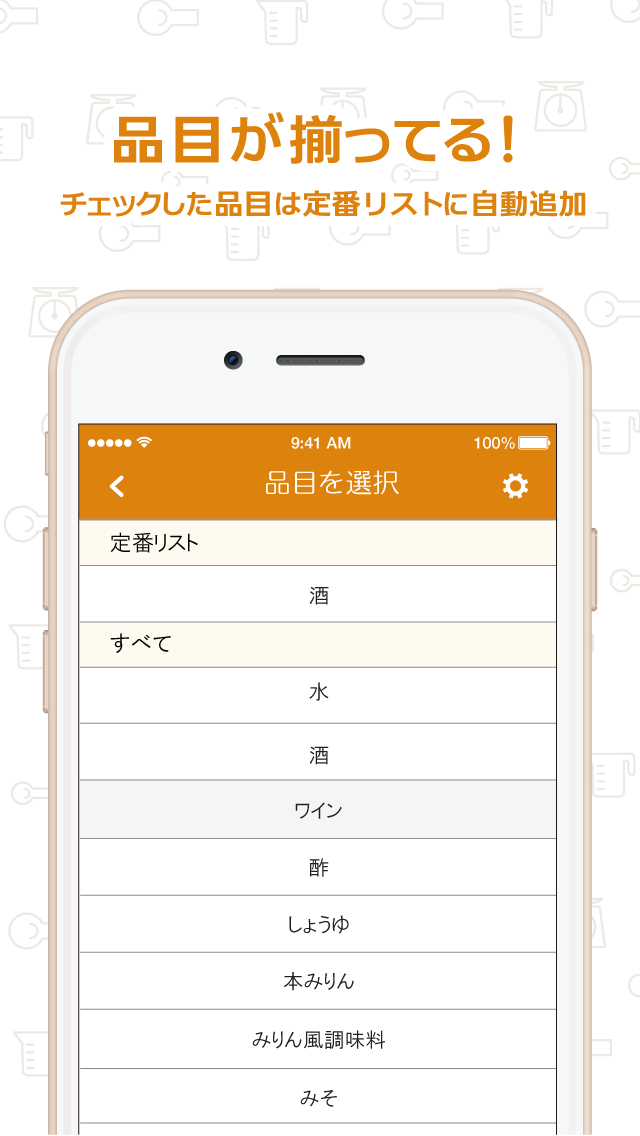 よく使う品目は自動的に「定番リスト」として品目選択の上部に表示されます。クリアすることも、定番リストの品目数を変更することも可能です。